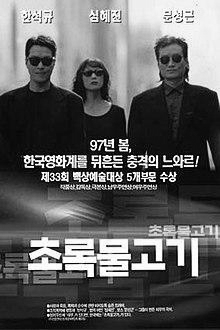 초록물고기. 도무지 감이 잡히지 않는 제목이다. 이창동 감독은 데뷔작부터 모호한 작명을 즐겨 썼다는 것을 알 수 있다. [시], [박하사탕], [밀양] 등. 제목만 봤을 때 도무지 무슨 내용일지 예측이 불가한. 드라마 장르에 아주 적합한 그런 작명이지 않을까 싶다. 영화 [초록물고기]는 이창동 감독의 데뷔작이라는 말만 듣고 틀기엔 다소 옛 분위기가 나서 접근하기 쉬운 영화는 아니다. 우선 저 괴랄한 포스터를 봐라. 세기말을 향해 달려가는 그 모습을 구현한 듯 다중으로 중첩된 포스트모던 타이포그래피는 기존의 문화와 새로운 문화가 부딪히며 일어나는 개념의 해체성을 나타내는 것처럼 보인다. 또, 마치 쿠엔틴 타란티노의 [저수지의 개들]처럼 썬글라스를 쓴 인물들의 모습은 분명 이 영화가 가지고 있는 어두운 면을 나타내는 것이겠지만 그 이상의 힌트는 없어 어떤 영화인지 감이 잘 오지 않는다. 이창동 감독 영화의 매력은 여기서 온다. 분명 사람 사는 이야기겠지만 뭔가 예측할 수가 없는. 뭔가 영화속 숨겨진 함의가 내 목을 조를것 같은 그런.