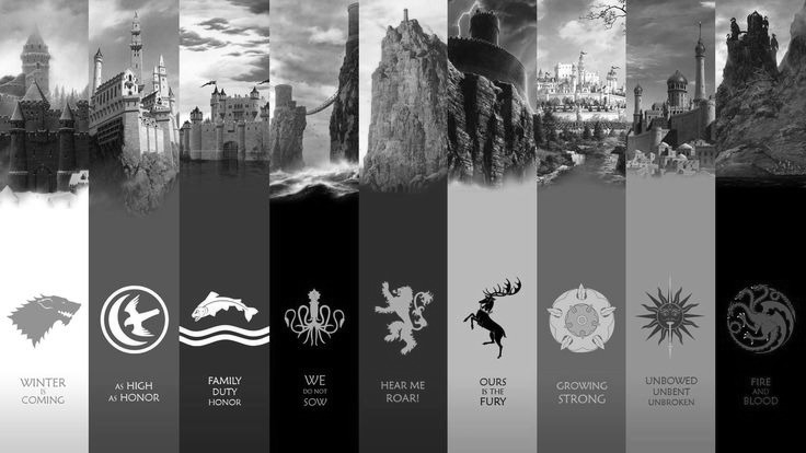 - 타르가르옌 가문(House Targaryen) : 용을 다루는 애들. 엘프처럼 백금발. 창백할 정도로 햐얀 애들이 많다. [왕좌의 게임]에서는 한 두명 밖에 안 나오지만, [하우스 오브 드래곤]에서는 얘네밖에 안나온다. 근친혼을 많이 해서 정신이 이상한 애들이 많다. 타르가르옌 아이가 태어날 때 신이 동전 던지기를 해서 50%의 확률로 X신이 나온다..는 전설이 있다.